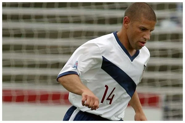 German International Andreas Moeller on USA’s Chris Armas; post-match:
